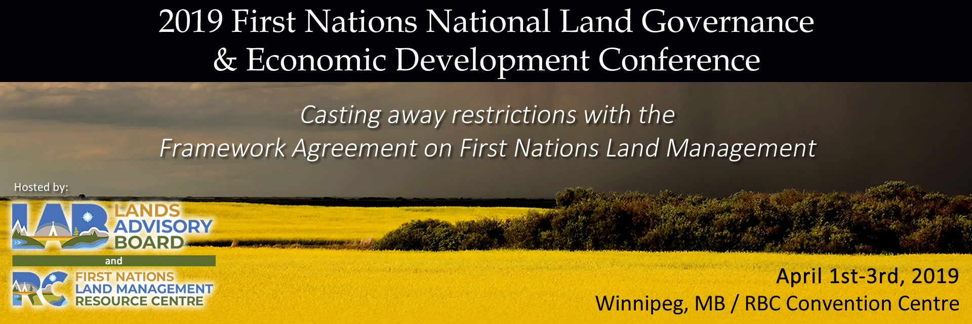 The 2019 Economic Development Conference will be an event where photography, audio and video recording may occur. By attending the event, you consent to photography, audio recording, video recording and their release, publication or reproduction to be used for web casts, promotional purposes, inclusion on websites, social media, or any other purpose by the First Nations Lands Advisory Board (LAB) or the First Nations Lands Management Resource Centre Inc (FNLMRC). Images, photos and/or videos may be used to promote similar LAB or FNLMRC events in the future. You release the LAB and the FNLMRC, its and employees, and each and all persons involved from any liability connected with the taking, recording, digitizing, or publication and use of interviews, photographs, computer images, video and/or or sound recordings.